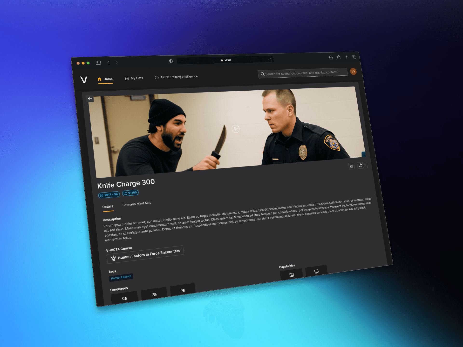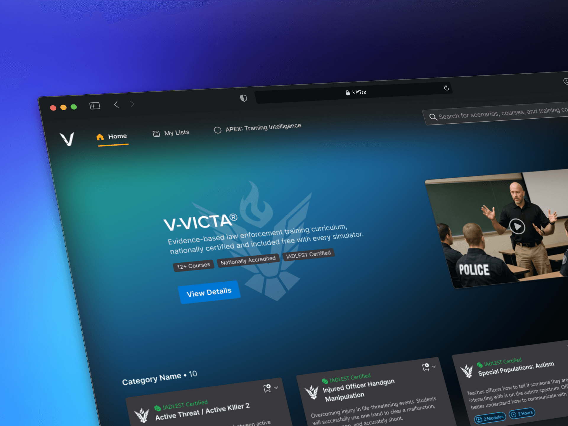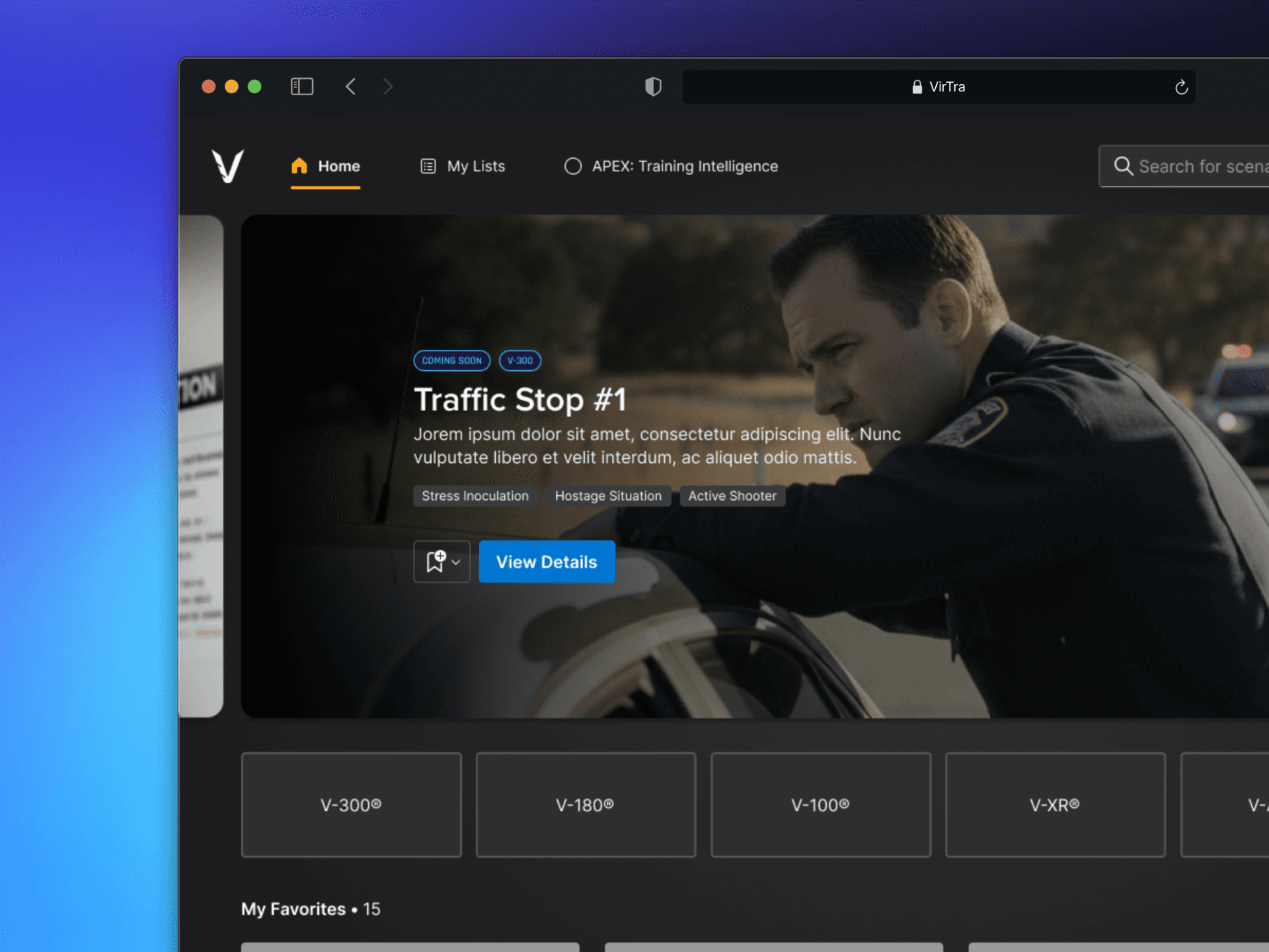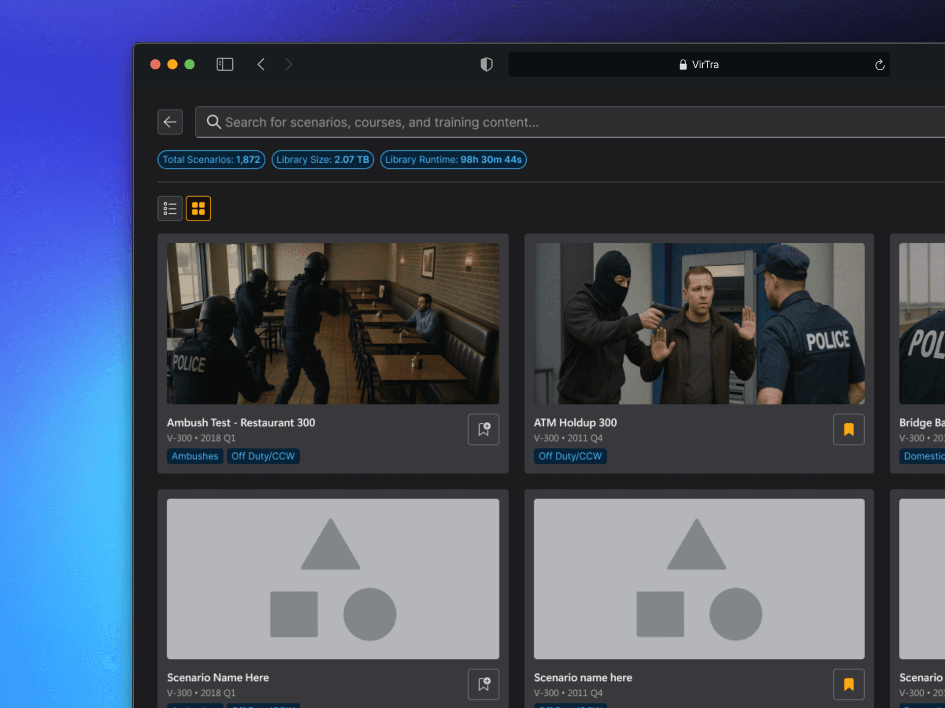 Mission Library is a web-based content discovery platform designed to help sales teams, customers, and internal teams quickly search, filter, and understand VirTra’s training scenario library.